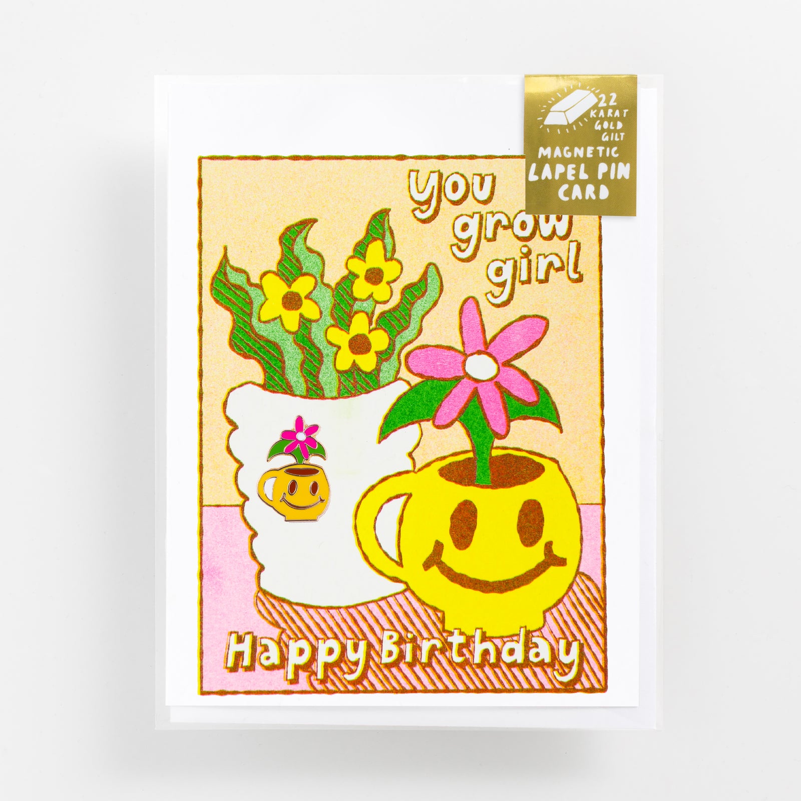 $11.50HBD You Grow Girl Smiley Face - Lapel Pin Card