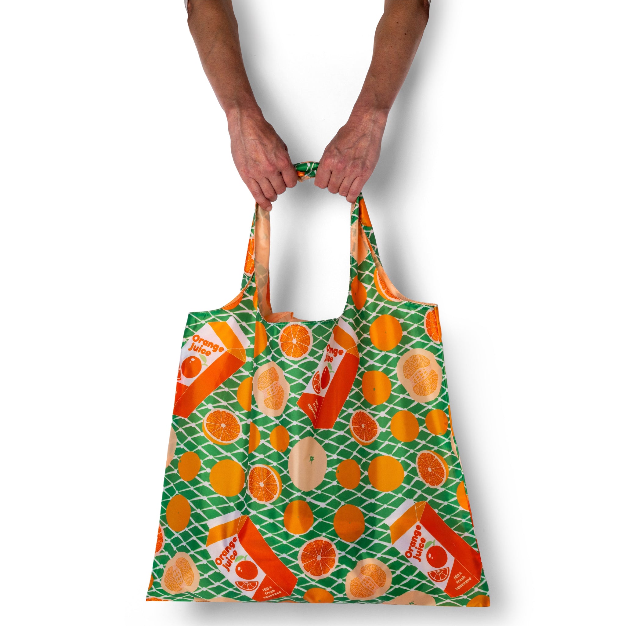 This is a great bag. So cute and roomy and strong with perfect handles - easy to carry by hand but also big enough to be a should bag. It folds down to convenient small size so it's super easy to tuck into your bag or backpack so you always have it with you. Love that it's made out of recycled plastic!