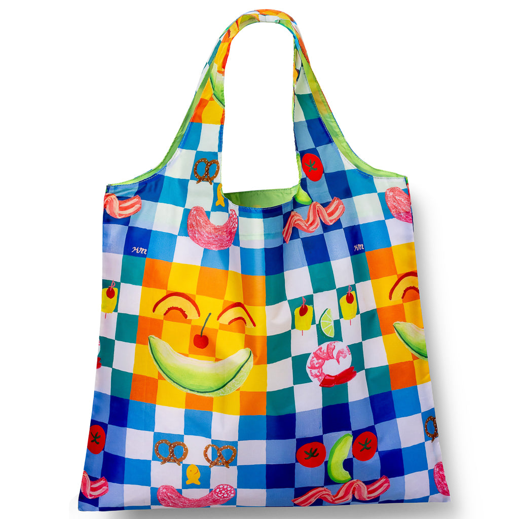 This is a great and very handy bag! Such a happy design! Love that it's roomy and strong with perfect handles - easy to carry by hand but also big enough to be a shoulder bag. Folds down small enough to easily tuck into your bag or backpack so you always have it with you. Love that it's made out of recycled plastic!
