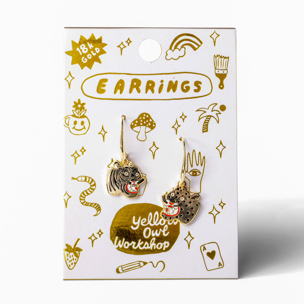 Drawing on traditional tattoo aesthetics and Chinese tigers, these earrings are perfect for anyone who likes a little edge to their accessories.